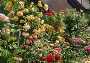 Когда вы задумаете создавать розарий своими руками, то на переднем плане располагайте полиантовые, приземистые розы, далее чайно-гибридные, или другие средней высоты. На заднем плане, те,которые завершат композицию. Это могут быть и розы-лианы и другие плетистые. Для выращивания красивых здоровых кустов роз необходимо, чтобы розарий смотрел «лицом» к солнцу. Тогда не возникнет риска, что высокий задний план оставит в тени низкорастущие розы.