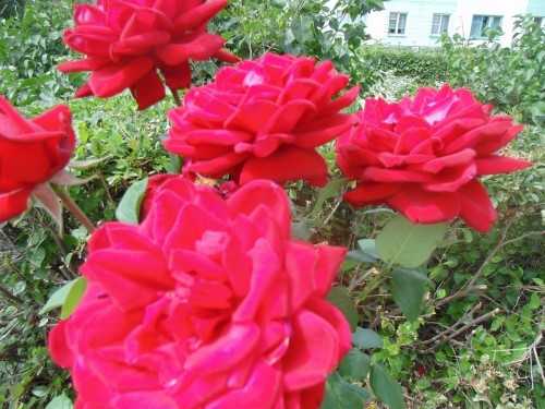 - Второй вариант. Оформить яркий цветник с сортами роз, имеющих насыщенный красный или желтый оттенок.