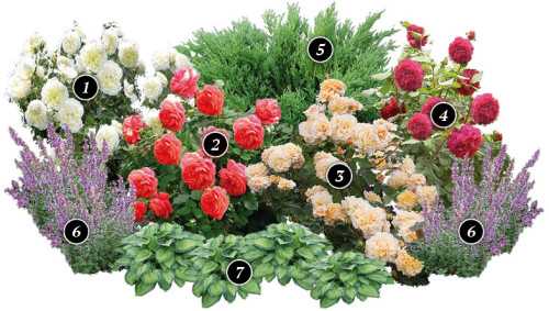 Комбинированная клумба: с какими растениями красиво сочетается роза