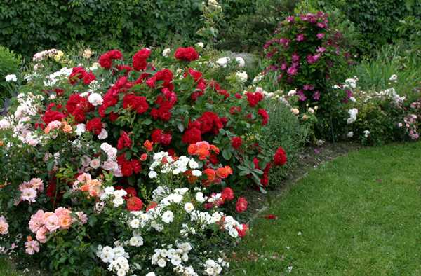 Если хочется посадить кустарниковые сорта, располагать их лучше группами. Желательно, чтобы бутоны имели разную окраску. Если роза имеет двуцветные бутоны, ее лучше посадить отдельно.