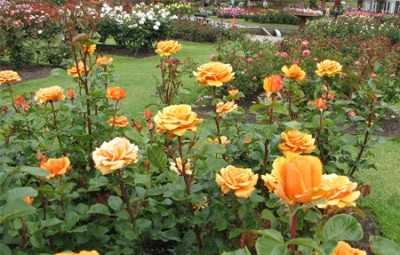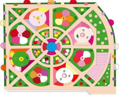 Прежде чем заняться устройством розария, надо составить план вашего будущего цветника. Вот примерный образец такой схемы розария, созданного в красно-оранжево-желтых тонах: