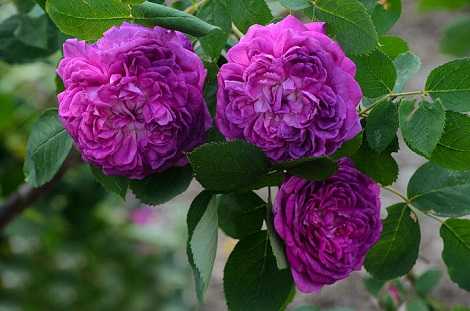 - Reine De Violettes (Рейн де Вайолетс) ценится среди цветоводов за необычную лавандовую окраску, насыщенность которой меняется в зависимости от погоды и почвы. В пасмурные дни окрас лепестков становится темно-фиолетовым. Бутоны появляются в небольших кистях с июня по сентябрь, источая приятное благоухание. Побеги без шипов длиной до 2 м, для поддержания декоративной формы проводят периодическую обрезку. Если хочется получить высокий раскидистый куст, устанавливают шпалеры или иную опору.