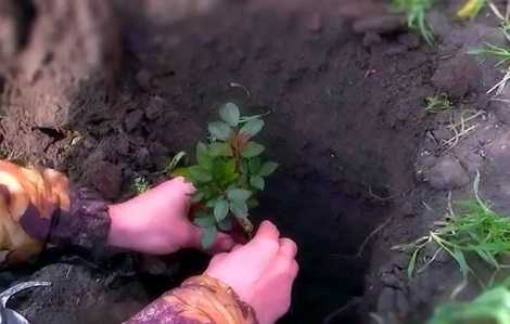 - Вынуть куст из контейнера и высадить в посадочную яму, соблюдая правильно расположение роз: низкорослые – на передней линии, средневысокие – на центральной, плетистые – на дальней.