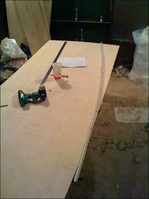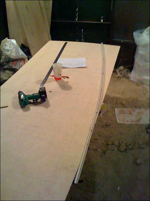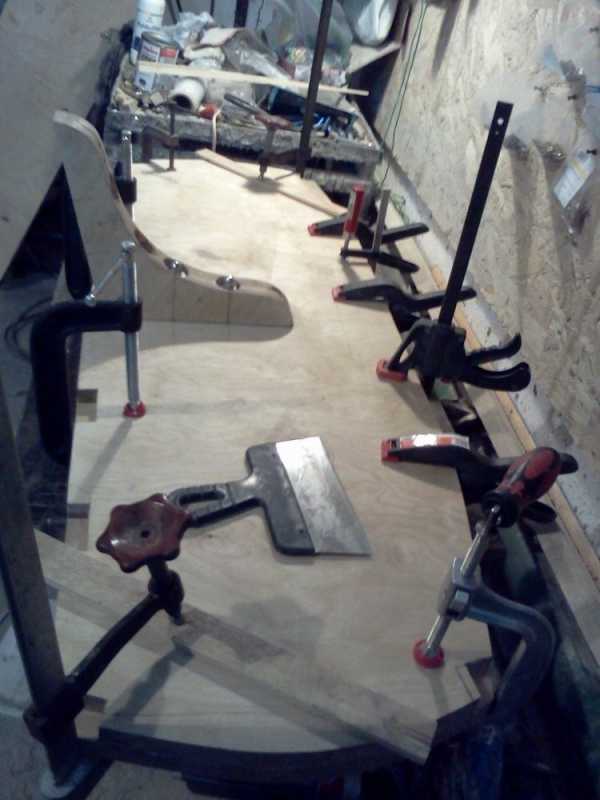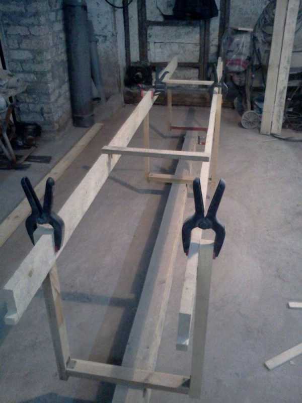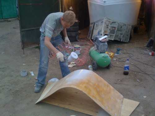 Установив распорку, начинаем гнуть борта, тут понадобиться пара помощников или веревка. Изогнув до нужного расстояния, прикладываем «задник» и определяем где и сколько нужно снять фаску, чтобы борта примкнули к нему без зазоров.