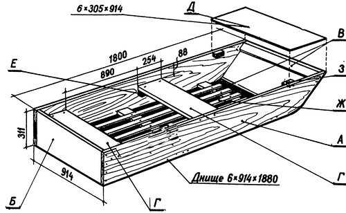| 5 | Сиденье кормовое (крепится на гвоздях и клее) | 1 | 1170x500x5 |
