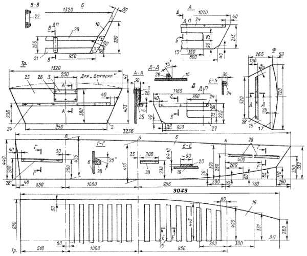 | 11 | Ьанка гребная (крепить к бортам саморезами через деталь 28) | 1 | 1150x250x20 |
