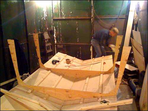 Чтобы облегчить установку транца, вы можете использовать специальные козлы, которые нетрудно соорудить самостоятельно. После чего закрепляется днище, затем бортовые части катера.