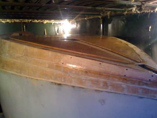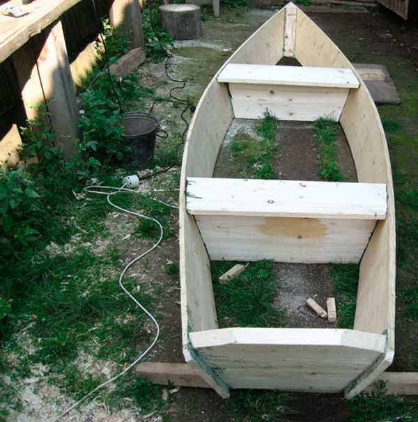 Лодка практически готова. Покрываем ее дополнительно еще 2 слоями пропитки и оставляем на просушку в тени.