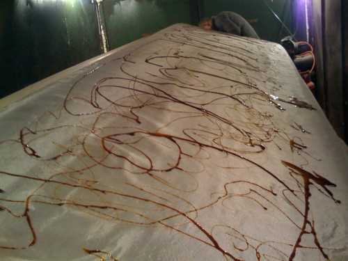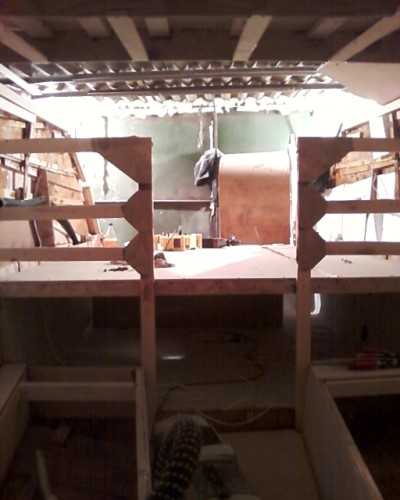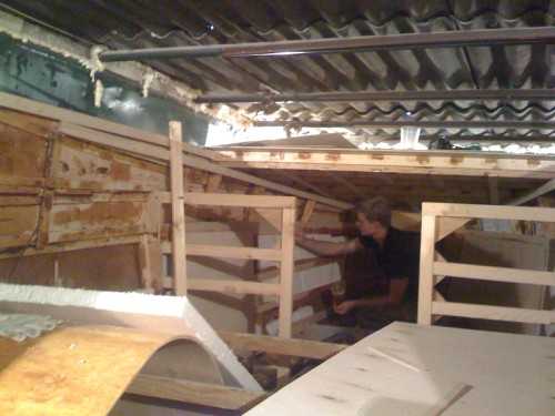 Как сделать катер с прочной матрицей? Крупные конструкции собираются из продольных балок, которые будут представлять собой горизонтальное основание катера. Внутри полученного каркаса, необходимо установить мостки, которые облегчат работу по выклейке корпуса. После того, как были установлены продольные брусья, являющиеся основанием матрицы, на них размечается будущее положение всех лекал, а также натягивается стальная проволока вдоль балок, которая будет являться струной, обозначающей ДП судна.