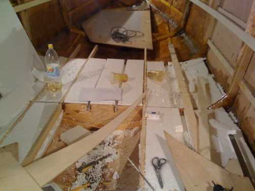 Если вы накроете эту зону палубой, то в результате сможете получить небольшую закрытую площадь, которую можно использовать в качестве хранилища для вещей. На изготовление палубы также можно пустить остатки фанеры.
