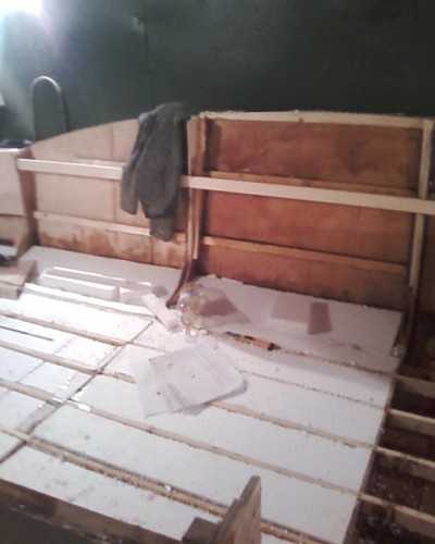 Чтобы по дну из жести было комфортно ходить и она не гремела, необходимо предусмотреть деревянный настил. Он может быть самой разнообразной конструкции. Например такой.