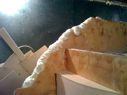После чего конструкция оставляется на просушку, а затем выполняются все внешние работы по зачистке и оклейке швов стекловолокном.