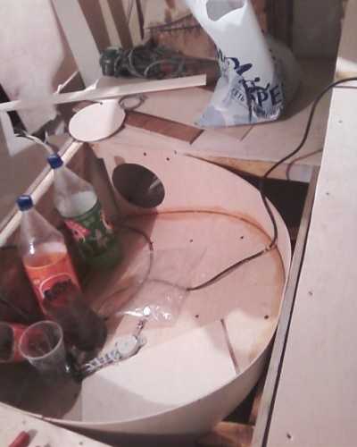 Далее, прежде чем собирать имеющиеся лекала в матрицу, необходимо озаботиться созданием наружной обшивки конструкции. Для того чтобы создать наиболее комфортные условия при работе с наружной обшивкой катера, необходимо предусмотреть деталь, обеспечивающую наклон матрицы на оба борта корабля.