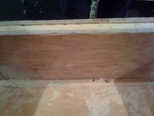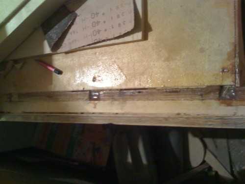 Завершаем очень важный первоначальный этап снятием фаски с нижней части бортов, распорок и нанесением на них защитного покрытия.