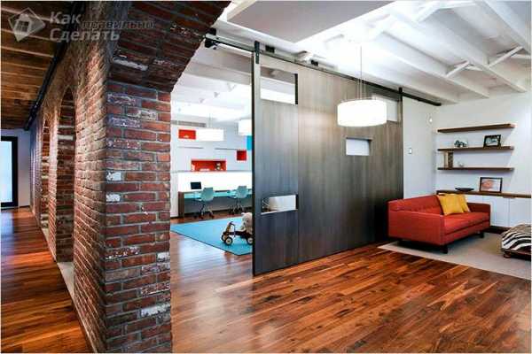 - Если дверь передвигается вдоль перегородки, то невозможно поставить вплотную к стене крупногабаритные предметы.