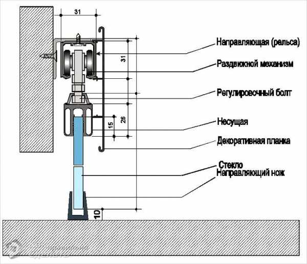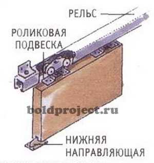 Если же ваша дверь купе сделанная своими руками будет иметь еще и нижнюю направляющую, то она (эта направляющая) должна быть соответствующим образом углубленной в пол.
