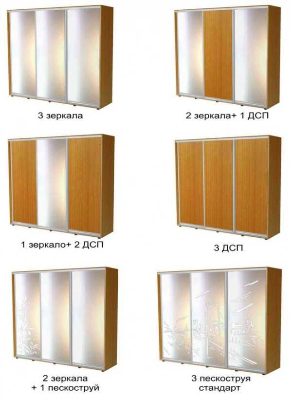 На фото можно увидеть различные варианты изготовления дверей купе: