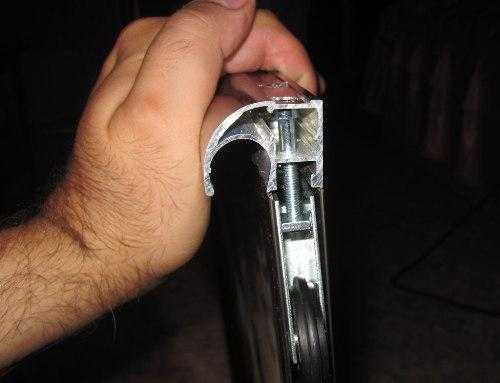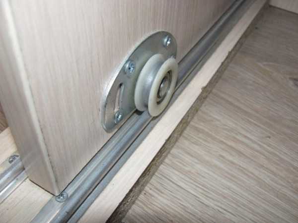 На нижнем торце дверей мы должны подобрать паз, по которому, собственно, и будет двигаться ролик.