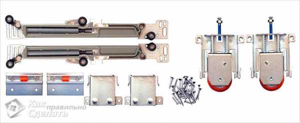 - Система роликов и направляющих. С этим все просто. Вам следует приобрести готовый комплект роликов и направляющих. Для этого отдавайте предпочтение надежному производителю. Также можно встретить немало мастеров самоделок, которые спроектируют роликовую систему самостоятельно. Более того необходимо решить, какой будет система подвесной или на рельсе. Соответственно выбирается подходящая система.