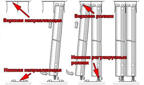 - Обязательно ролики следует отрегулировать. Делать эту работу необходимо только тогда, когда полотно установлено на направляющую.