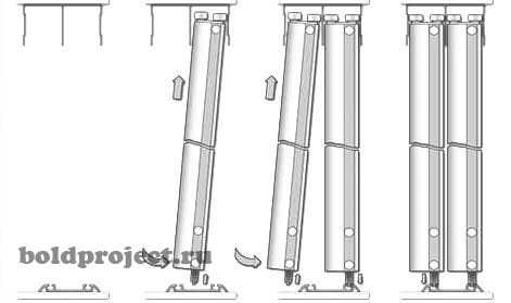 4. Нижняя направляющая крепится к полу. После этой процедуры полотно должно встать строго вертикально.