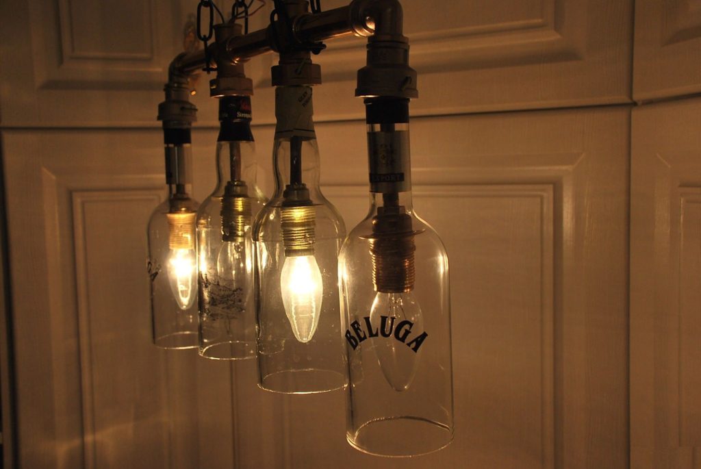 Создание собственного освещения не должно стоить целое состояние. Это также не обязательно требует всех новых деталей, когда есть так много возможностей использовать переработанные материалы. Взгляните, например, на эту люстру из переработанных стеклянных бутылок.