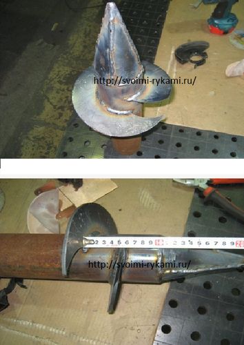 Проще приваривать лопасти к телу трубы, потому что оно имеет постоянное сечение.