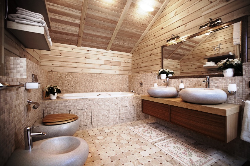 Ванная комната в деревянном доме (без разницы, из чего он выполнен: профилированного бруса или бревна, либо рублен вручную) обустраивается в несколько этапов: