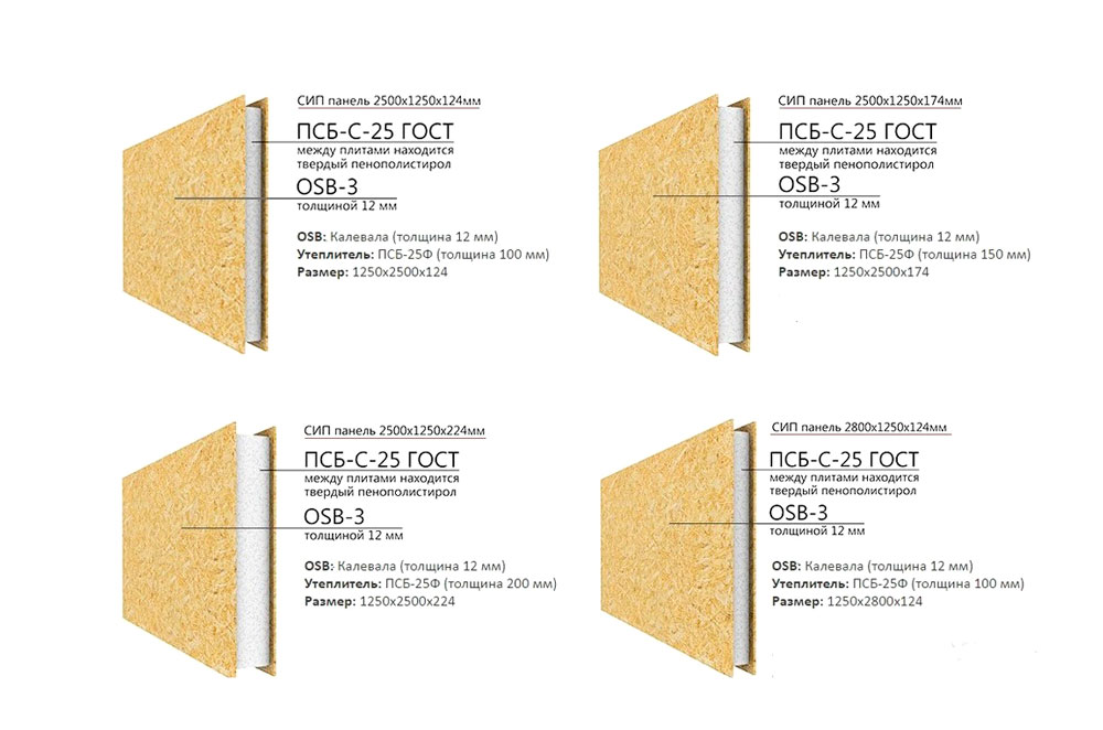 В основу материала чаще всего входят листы ДСП (если это СИП) либо листы стали. Состоит панель из нескольких плит, между которыми размещается утеплительный материал.