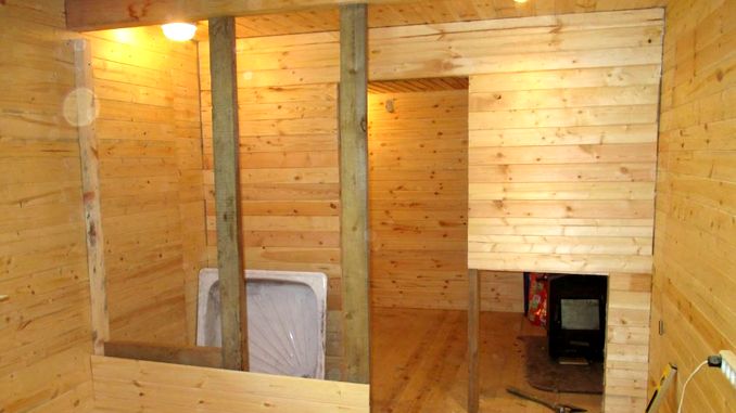 На этом этапе важно наделить баню хорошей теплоизоляцией, иначе это будет не баня а добротный сарай. Утеплять можно минеральной ватой или пенополистерол (более предпочтителен, в связи со своими свойствами не впитывать влагу).