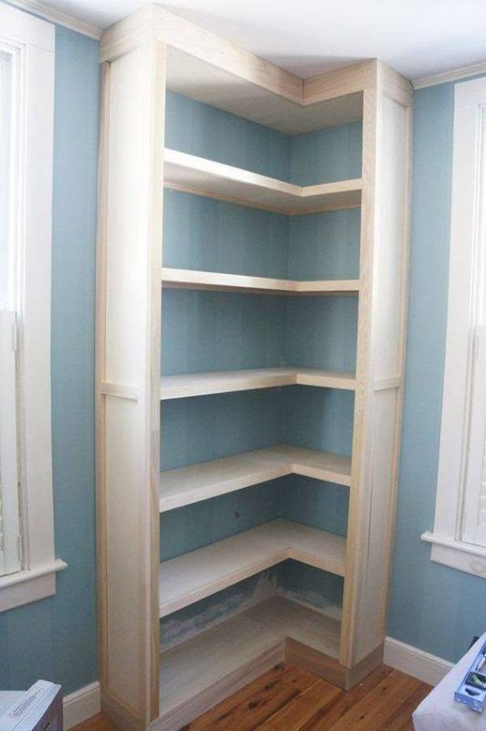 Нишу с открытым стеллажом легко сделать своими руками с помощью обычного столярного инструмента.