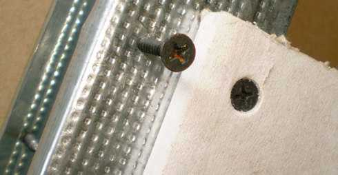 При креплении гипсокартона используем шуруповерт и шурупы 25 мм. Каждый шуруп должен хорошо держать свой участок, поэтому его нужно закрутить правильно. Настройте усилие на шуруповерте таким образом, чтобы шуруп входил под бумагу листа на 1 мм. Шуруп который вошел глубоко и держится уже не на бумаге, а внутри крошащейся плиты, держать не будет, на них не рассчитывайте, а закрутите рядом. Шуруп, который недокручен и торчит, мешает шпатлевке и его стоит аккуратно докрутить отверткой.