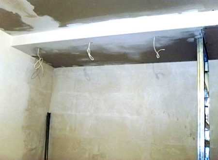 - Как плавило, вешать кухонные шкафы нужно под потолок, поэтому иногда закрепляется каркас прямо на гипсокартонной стене.