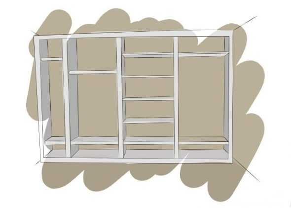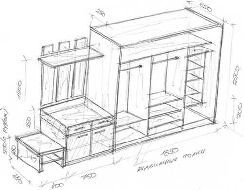 В первую очередь определяемся, где будет расположена конструкция, каких она будет габаритов, сколько предполагается сделать полок, каковы размеры самой длинной одежды – это нужно учесть, чтобы правильно разместить штангу под пальто, куртки и платья.