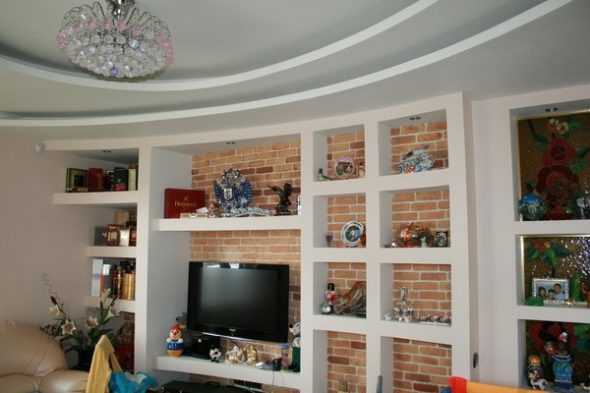 - Мебель из ГКЛ получается прочной и способна выдерживать значительный вес.Не возникает проблем с подбором недостающего элемента обстановки, чтобы он сочетался с уже имеющейся мебелью. Шкафы из гипсокартона легко вписываются в общий интерьер: их можно отделать в тон обстановки, а можно «слить» со стенами, и они не будут нарушать дизайн помещения.