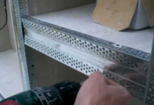 - Наружные углы шкафа-купе в обязательном порядке укрепляются металлическим перфорированным уголком, посаженным на ту же шпаклевку. Армирование необходимо, поскольку конструкцию в любом случае кто-нибудь, да зацепит.