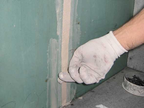 - Швы и внутренние углы необходимо проклеить серпянкой и заделывать стартовой шпатлевкой.