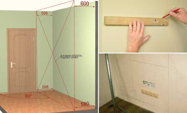 - Присмотренное место замеряется по всем углам будущего шкафа-купе из гипсокартона. Это необходимо для сопоставления размеров: в редких квартирах все стены имеют одинаковую высоту.