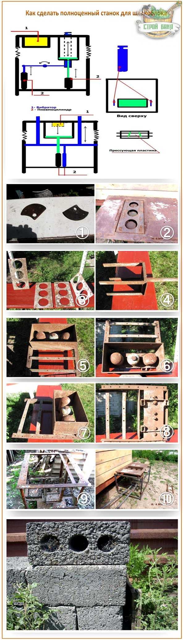 Изготовить хороший станок для шлакоблоков своими руками – не проблема. Для этого понадобится:
