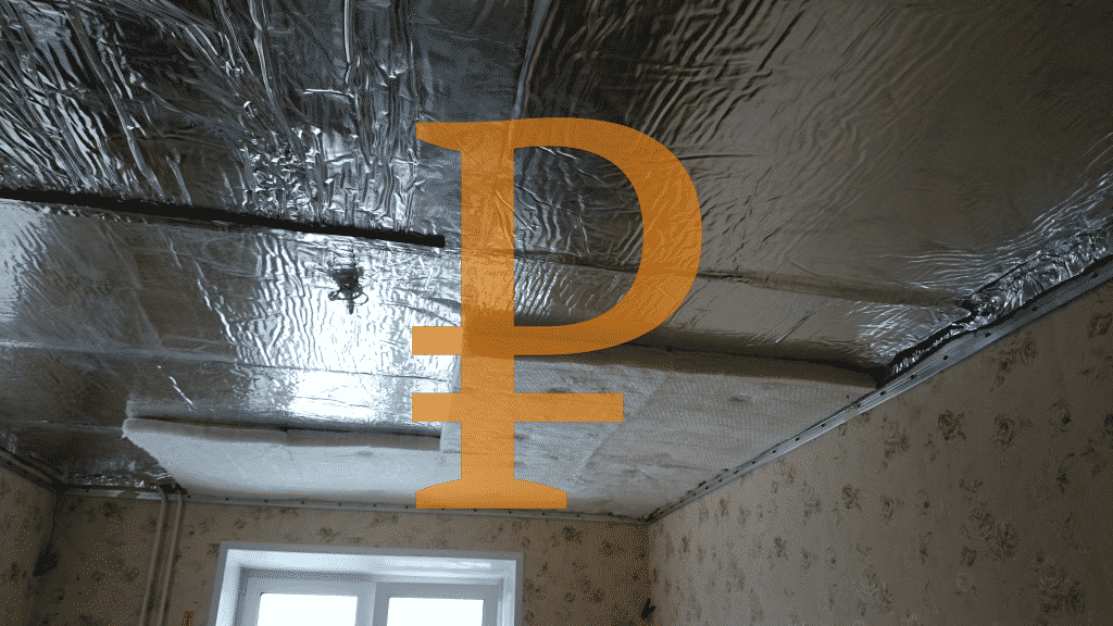 - Произведите наклеивание звукоизолирующей мембраны по всей поверхности потолка.