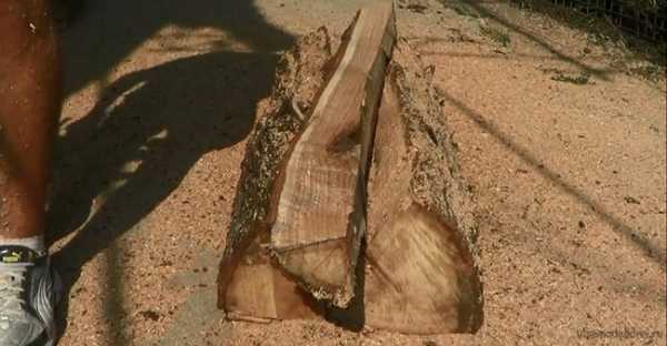 Бревно размечают, чтобы получилось две немного неравные части. Из меньшей будет сделана спинка, а из большей – сиденье.