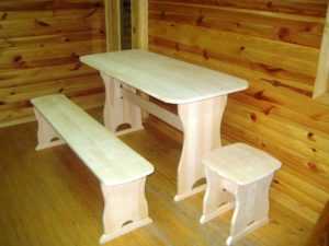 - Дерево для сооружения банного инвентаря должно быть влагостойким, это позволит в условиях повышенной влажности и высокого температурного режима прослужить мебели длительное время.