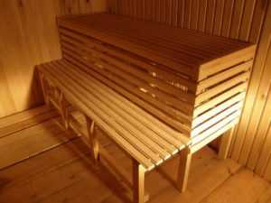 Перед тем как сделать скамейку для бани, следует продумать ее конструкцию. Минимальный размер изделия – 1,5 м в длину и 40 см в ширину. Оптимальные параметры: длина – 1,8 м, а ширина – 60 см. Чаще всего используют скамейки, прикрепляемые к полу либо стенам бани. Встречаются и переносные, а также разборные аналоги, позволяющие выносить их на просушку.