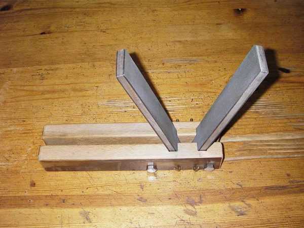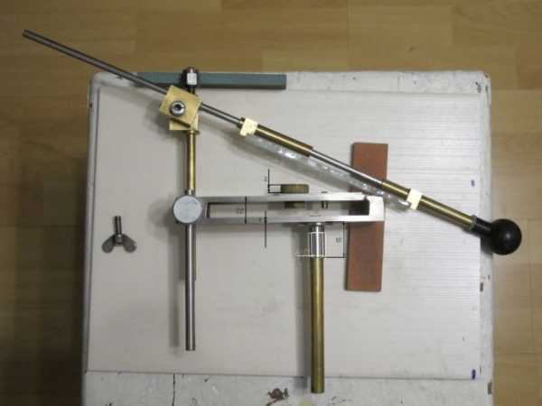 Из сказанного следует, что приспособление для заточки ножей должно иметь возможность выставления требуемого угла заточки. И это — основная сложность при его проектировании и изготовлении.