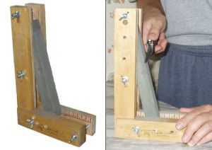 Этот принцип лежит в устройстве всех точильных приспособлений. Выполняя это правило, можно самостоятельно изготовить такое устройство.