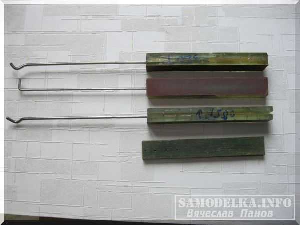 - В качестве основного элемента используем самодельные бруски – на алюминиевую пластину приклеиваем наждачную бумагу с разной зернистостью. Такие приспособления легко фиксируются в рычаге.