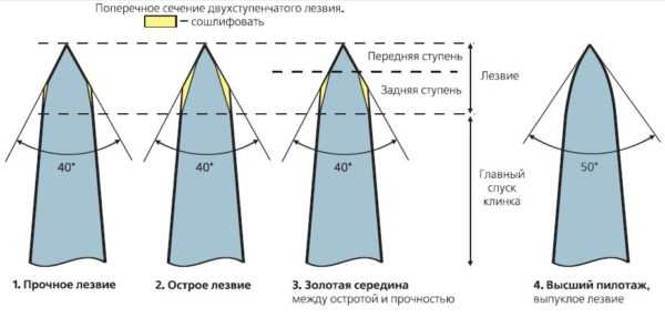 Угол заточки определяется исходя из основной области применения конкретного клинка: