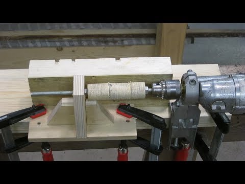 Достаточно закрепить дрель на ровном основании с помощью зажима для шейки инструмента. А напротив, строго соосно, установить заднюю бабку.