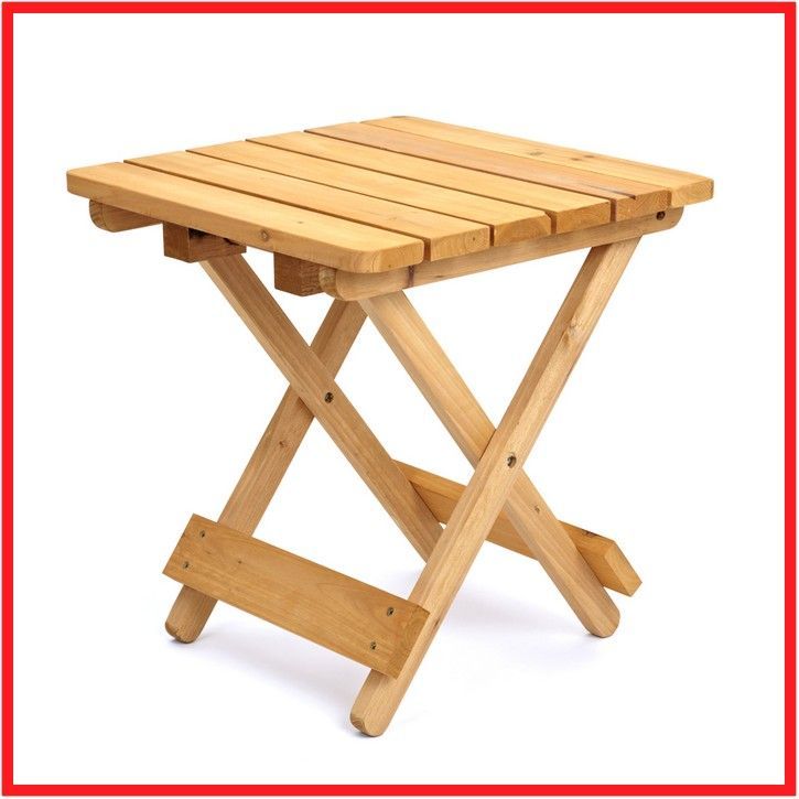 Эта конструкция получается довольно легкой, и поэтому используется в походах, в саду и на рыбалке. Для начала работы выпиливают бруски, с предусмотрительным запасом диаметра. Нарезать такого рода материалы очень удобно на циркулярной пиле. Для столешницы можно выбрать любой материал, но предпочтительнее лакированная фанера или же древесина, покрытая несколькими слоями лака. Спилы должны быть закрыты кромочной лентой, а брус, заготовленный под ножки, закругляется лобзиком или шлифмашиной.
