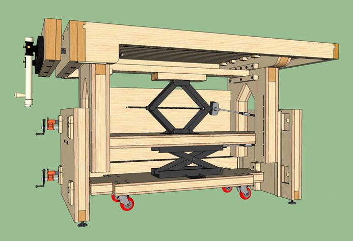 Традиционный внешний вид верстака, но с добавлением столешницы из МДФ, вы получите рабочую поверхность, которая остается прямой и ровной независимо от времени года. В этой сборке есть много нового оборудования, на которое стоит обратить внимание. Это включает в себя металлические стержни, S-образные зажимы и рычаги.